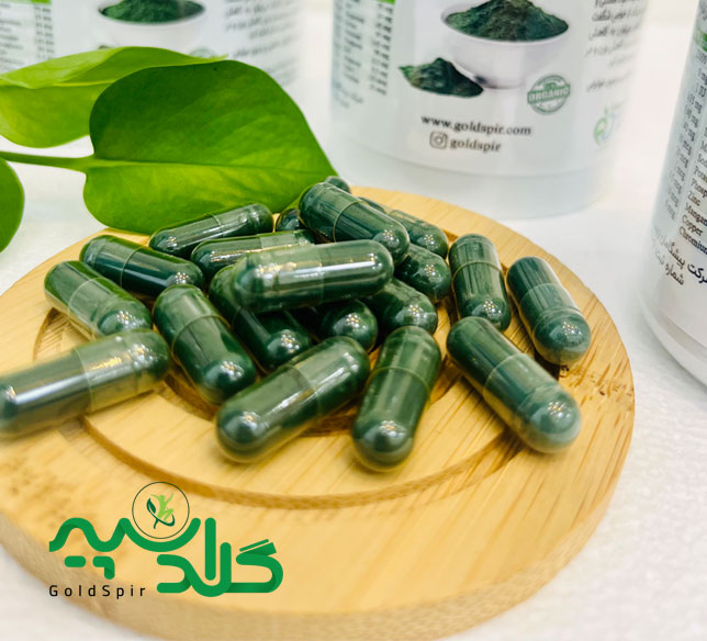 کپسول جلبک اسپیرولینا توسط شرکت گلداسپیر در دو سایز 500 و 1000 میلی‌گرم موجود می‌باشد. این کپسول حاوی بهترین و باکیفیت‌ترین پودر جلبک اسپیرولینا با درصد بالای پروتئین (%60-70) بوده و فاقد هرگونه مواد نگه‌دارنده و یا ناخالصی می‌باشد. این کپسول بدون بو و مزه بوده و مناسب کسانی است که به بوی جلبک اسپیرولینا حساس‌اند.